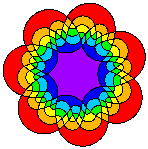 The 7-fold rosette at the top of the page is a Venn diagram for n = 7, called "Victoria." Find out more about it by going to the page on symmetric Venn diagrams for small n.
