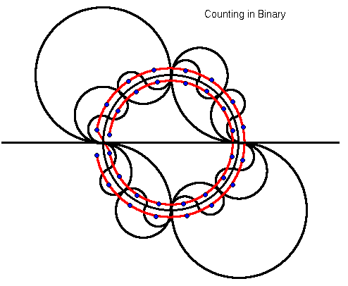 In these figures, the most significant bit corresponds to the circular Venn curve and the second most significant bit corresponds to the horizontal line. The least significant bit, the one that changes most often, is the most undulating of the curves. These observations scale up in the obvious way for larger values of n. This connection was first noticed by Edwards (see [Ed04]).