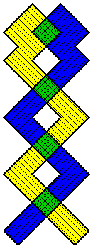 | On the left: Grünbaum's coiled snakes. A k-fold 2-Venn diagram with mirror image symmetry. Shown with k = 4. Other values of k may be obtained by twisting/untwisting the tails. |