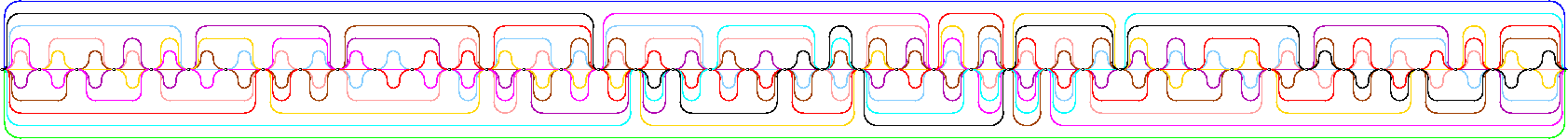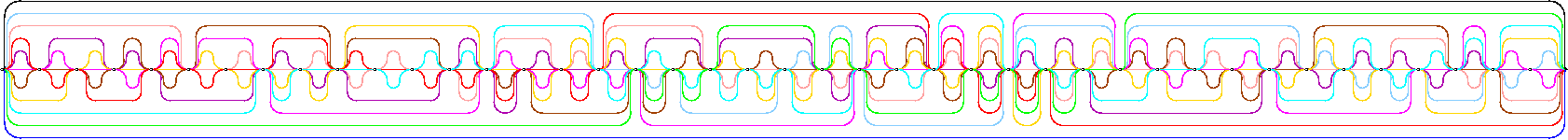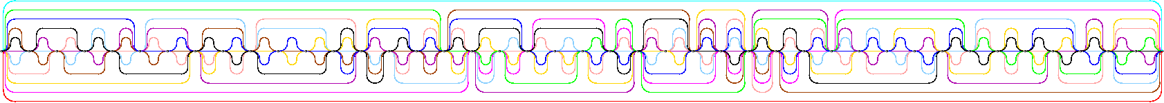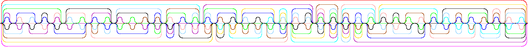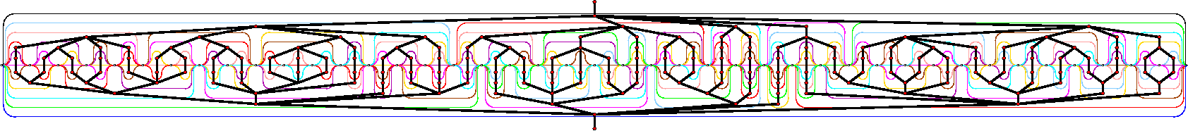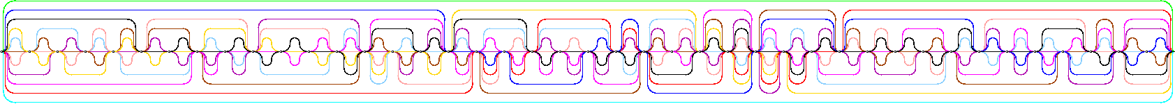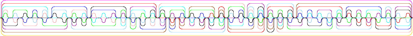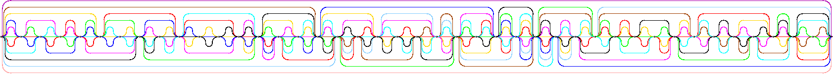 The necklaces in the following table are assigned to the vertices of the lattice left-to-right at a given level. The density of the necklace increases in the lattice from top-to-bottom. For example, there is an edge in the lattice from face #2 to face #7, corresponding to necklaces 11000000000 and 11100000000. Face #2 is the unique dual vertex at level 2, and face #7 is the leftmost dual vertex at level 3. Since these necklaces differ at bit position 3, the edge between them represents curve 3. To check that the diagram is correct one needs to (a) verify that adjacent vertices correspond to adjacent necklaces, and (b) that all the necklaces are rotationally distinct.