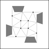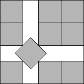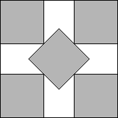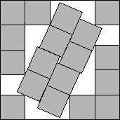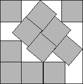 The best known packings for many values of n are more complicated. Many seem to require packing with squares at angles other than 0o and 45o. In 1979, Walter Trump improved Göbel's packing of 11 squares (see Figure 6). Many people have independently discovered this packing. The original discovery has been incorrectly attributed to Gustafson and Thule [11]. The middle squares are tilted about 40.182o, and there is a small gap between these squares. This packing is also rigid.