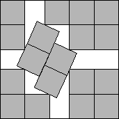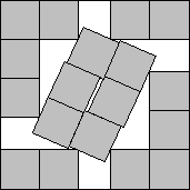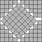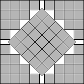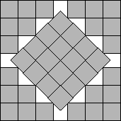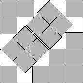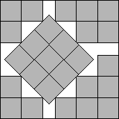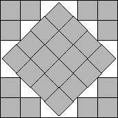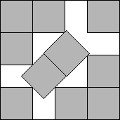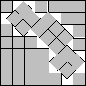 Göbel also found that if integers a and b satisfied a-1<b/√2<a+1, then 2a2+2a+b2 squares can be packed inside a square of side a+1+b/√2. This is accomplished by placing a b × b square of squares at a 45o angle in the center. This gives the best known packings for 28, 40, 65, and 89 squares (see Figure 3). Adding an "L" around the packing of 65 squares gives the best known packing of 82 squares. The packing for n=40 is rigid.