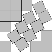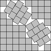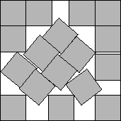 In 1980, Pertti Hämäläinen improved Göbel's packing of 17 squares using a different arrangement of squares at a 45o angle. But in 1998, John Bidwell, an undergraduate student at the University of Hawaii, improved this packing (see Figure 12) [1]. It is the smallest example where the best known packing contains squares at three different angles.