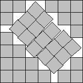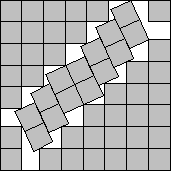 Charles Cottingham, who improved some of Göbel's packings for n≤49, was the first to use diagonal strips of width 2 [6]. Soon after he produced a packing of 19 squares with a diagonal strip of width 2, Robert Wainwright improved Cottingham's packing slightly (see Figure 4) [4]. In 2002, David Cantrell found some alternative packings for 19 squares [14].