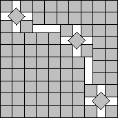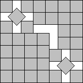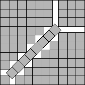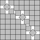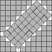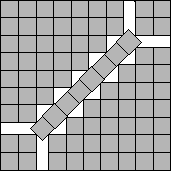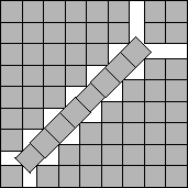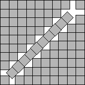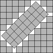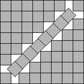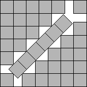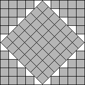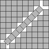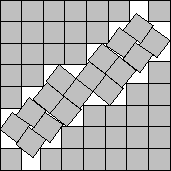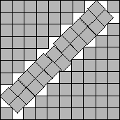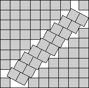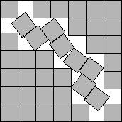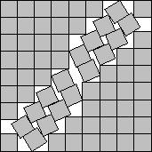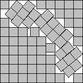 In 1980, Evert Stenlund improved many of Cottingham's packings, and provided packings for n≤100 [6]. His packing of 66 squares uses a diagonal strip of width 3 (see Figure 5). In this packing, the diagonal squares touch only the squares in the upper right and lower left corners. Adding an "L" to this packing gives the best known packing of 83 squares.